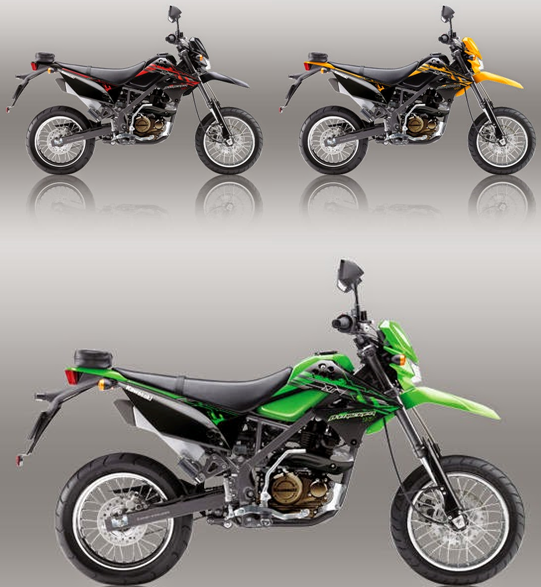 D-Tracker 150. Didesain untuk lingkungan urban, D-Tracker baru memakai velg ukuran 17″, menjadikannya full-size supermoto. Dengan banyaknya perubahan dari sektor body, instrumen seperti penambahan indikator bahan bakar, hingga mesin serta rangka, D-Tracker 150 baru benar-benar wujud supermoto sesungguhnya. D-Tracker 150 SE.