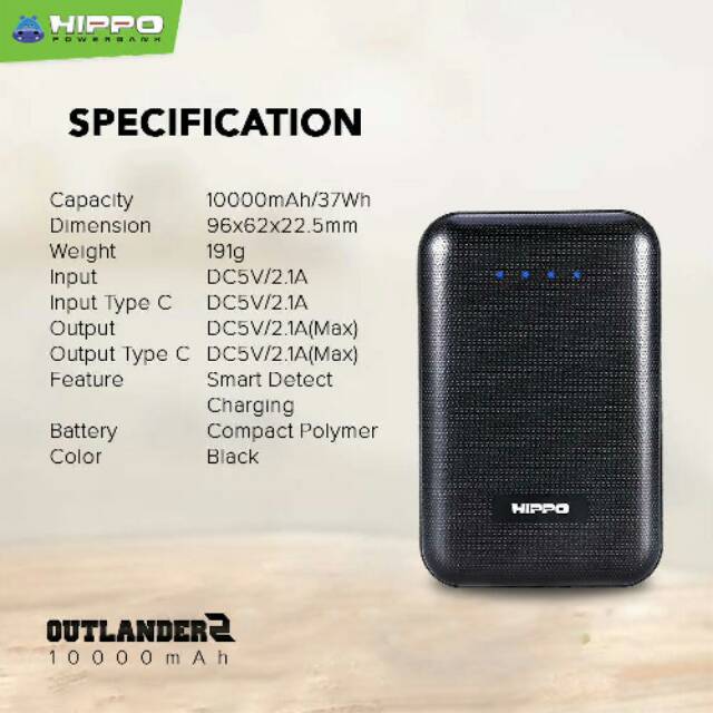 Hippo Powerbank Coral 6000mAh. Rp 99.000. Kapasitas 6000 mAh. Smart Detect Charging. Build in Cable Micro dan Lightning Connector. Add to wishlist. Pilih opsi.