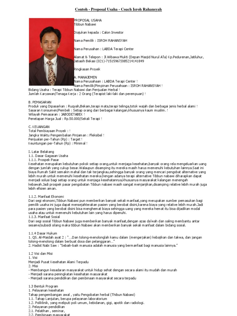 Contoh-Proposal Kewirausahaan --Business-Plan.doc Contoh-Proposal Kewirausahaan --Usaha.pdf Kontribusi Pt Dirgantara Indonesia Untuk Mendukung Proyek Epcc Di Pt Rekayasa Industri.doc P R O P O S A L Pioneer Blast Quarry Mine Operation.pdf Proposal Kewirausahaan - Bisnis.rar Proposal Kewirausahaan - Bisnis Cuci Helm (Helmwash).pdf Contoh Proposal Bisnis / Bisnis Plan [Update 2021] January 15, 2020 7 Mins Read. Dalam mengajukan ide bisnis kepada calon investor, kerabat, ataupun calon konsumen, kita membutuhkan sebuah rancangan usaha secara tertulis. Rancangan usaha ini biasa disebut sebagai proposal bisnis, bisnis plan, atau proposal usaha.