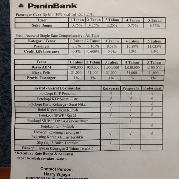 Suku bunga bank panin. Jakarta, CNBC Indonesia- PT Bank Panin Tbk meraih laba bersih mencapai Rp802,12 miliar pada kuartal I-2019, atau naik 20,23% dari laba periode yang sama tahun lalu sebesar Rp667,17 miliar. Mengacu publikasi laporan keuangan perseroan Jumat ini (26/4/2019), meskipun laba naik, pendapatan bunga bersih justru turun tipis 0,9% menjadi Rp 2,15 triliun dari sebelumnya Rp2,17 triliun. Beranda > Footer ID > Suku Bunga > Suku Bunga Pinjaman Suku Bunga Dasar Pinjaman. KPR. Kredit Express Panin. Jangka Waktu Pinjaman Suku Bunga; 12 Bulan: 0.88 % : 24 Bulan: 0.99 %: 36 Bulan: 1.29 % - Suku bunga dapat berubah sewaktu-waktu ... Bank Panin, Tbk. terdaftar dan diawasi oleh Otoritas Jasa Keuangan Dictionary - Free ebook download as Text File (.txt), PDF File (.pdf) or read book online for free. This is a dictionary file with all the words ever Suku bunga dapat berubah tanpa pemberitahuan terlebih dahulu Efektif sejak: 5 Agustus 2021 . Tabungan Panin MGM. Range Saldo Suku Bunga (% pa) 0 - < Rp 25.000.000 ... Merupakan total dana / simpanan nasabah di Bank Panin - Suku bunga dapat berubah tanpa pemberitahuan terlebih dahulu - Efektif sejak: 10 Agustus 2021: Deposito USD. Jangka Waktu ...
