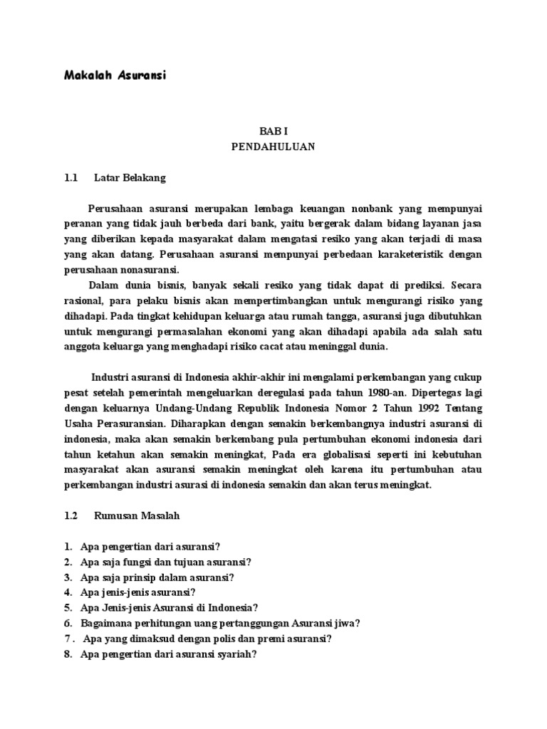 (DOC) pengertian dan program asuransi kesehatan - Academia.edu Pengertian Asuransi Kesehatan Asuransi kesehatan adalah sebuah jenis produk asuransi yang secara khusus menjamin biaya kesehatan atau perawatan para anggota asuransi tersebut jika mereka jatuh sakit atau mengalami kecelakaan. PDF Asuransi Kesehatan Pengertian Asuransi Asuransi kesehatan adalah sebuah jenis produk asuransi yang secara khusus menjamin biaya kesehatan atau perawatan para anggota asuransi tersebut jika mereka jatuh sakit atau mengalami kecelakaan. Secara garis besar ada dua jenis perawatan yang ditawarkan... PDF Pengertian Asuransi dan Asuransi Syariah TINJAUAN PUSTAKA. A. Asuransi 1. Pengertian Asuransi dan Asuransi Syariah. Menurut beberapa pengertian menurut para tokoh mengenai pengertian asuransi dapat disimpulkan bahwa pengertian asuransi adalah perjanjian antara kedua belah pihak atau lebih dengan pihak... blogs.itb.ac.id › abdu › 2021/09/28Pengertian Dan Struktur Karya Ilmiah Yang Baik Dan Benar ... Sep 28, 2021 · Pengertian Karya Ilmiah. Karya ilmiah adalah hasil karya tulis yang diperoleh melalui penerapan konvensi ilmiah. Berbeda dengan karya lain, penulis mungkin membutuhkan contoh karya ilmiah karena karya mereka menggunakan pemikiran logis dan gaya bahasa yang sistematis. Penulisan karya ilmiah sangat memperhatikan kemampuan bahasa dan menulis.
