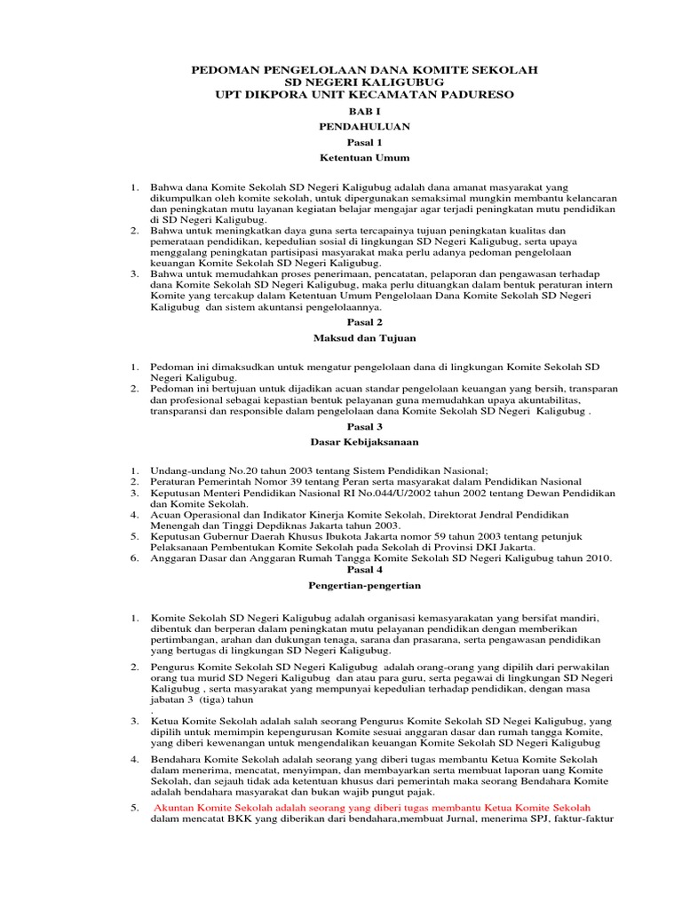Analisis Peranan Komite Sekolah Dalam Pengawasan ... ANALISIS PERANAN KOMITE SEKOLAH DALAM PENGAWASAN PENGGUNAAN DANA BANTUAN OPERASIONAL SEKOLAH MENENGAH PERTAMA (SMP) NEGERI DI KECAMATAN SEBERANG ULU I KOTA PALEMBANG Fauziah1) 1) Program Studi Manajemen Informatika Universitas Indo Global Mandiri Jl. Jend. Sudirman No. 629 KM.4 Palembang Kode Pos 30129 Email : ziaaslan25@gmail.com ABSTRACT 41 juknis penggunaan dana komite sekolah - Info Perbankan ... Juknis penggunaan dana komite sekolah. Penggunaan dana BOS Reguler hanya untuk kepentingan peningkatan layanan pendidikan di Sekolah dan tidak ada intervensi atau pemotongan dari pihak manapun ; Penggunaan dana BOS Reguler harus didasarkan pada kesepakatan dan keputusan bersama antara tim BOS Sekolah, guru, dan Komite Sekolah. Juknis Pembentukan Pengurus Komite Sekolah Dalam Juknis Pembentukan Komite Sekolah SD SMP SMA SMK Sederajat, dinyatakan bahwa Bupati/walikota, camat, lurah/kepala desa merupakan pembina seluruh Komite Sekolah sesuai dengan wilayah kerjanya. ... Penggunaan hasil penggalangan dana oleh Sekolah harus: a. mendapat persetujuan dari Komite Sekolah; b. dipertanggungjawabkan secara transparan ... (PDF) PETUNJUK TEKNIS PENGELOLAAN BELANJA ... - Academia.edu Buku Petunjuk Teknis (Juknis) ini, disusun dan memuat tentang tujuan, program, tugas dan tanggungjawab para pihak terkait. Persyaratan penerimaan Bantuan Sosial, mekanisme pengajuan rancangan program/proposal, pemanfaatan dan pembelanjaan dana Bantuan Sosial, serta pelaporan pertanggungjawaban penggunaan bantuan sosial pemberdayaan Komite ...