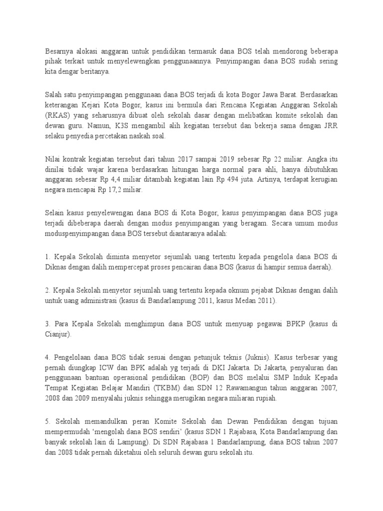 Contoh Berita Acara Pembentukan Tim Bos Sekolah : Ba ... Untuk bos pada tahun anggaran 2017 setiap sekolah diharuskan membuat sk tim manajemen dana bos yang terdiri dari unsur sekolah, komite sekolah dan wali . Dalam bentuk berita acara rapat dan ditandatangani oleh peserta rapat. Bertanggung jawab secara penuh baik formal maupun material atas penggunaan dana bos di sekolah;; Source: Juknis BOS 2021 Petunjuk Teknis Pelaporan Dana BOS ... Komponen Penggunaan Dana Berdasarkan Juknis BOS 2021. ... Penggunaan bantuan operasional harus dilakukan bersarkan kesepakatan bersama antara guru, tim BOS dan Komite Sekolah. Selanjutnya keputusan tersebut dituliskan dalam berita acara dan ditandatangani oleh seluruh peserta rapat. Permendikbud 75 Tahun 2016 tentang Komite Sekolah - Jogloabang Abstraksi Perubahan Regulasi Komite Sekolah. Permendikbud 75 Tahun 2016 Tentang Komite Sekolah mengatur tentang apa itu Komite Sekolah, diantaranya adalah sebagai berikut: Tugas Komite Sekolah adalah: memberikan pertimbangan dalam penentuan dan pelaksanaan kebijakan pendidikan; menggalang dana dan sumber daya pendidikan lainnya dari masyarakat ... DOWNLOAD JUKNIS BOS TAHUN 2021 - tasADMIN Sekolah menentukan komponen penggunaan Dana BOS Reguler sesuai dengan kebutuhan sekolah. F. Pembayaran Honor Pada Juknis BOS 2021. Pembayaran honor digunakan paling banyak 50% (lima puluh persen) dari keseluruhan jumlah alokasi Dana BOS Reguler yang diterima oleh sekolah. Pembayaran honor kepada guru dengan persyaratan: