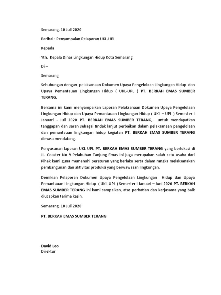 Berkah emas sumber terang Berkah emas sumber terang. Jl. Coaster No. 9 Semarang 50174 - Indonesia Phone (024) 3587429 Fax. The low density makes flotation difficult for immersed person. Page 3 of 4 PT. Berkah emas sumber terang jl. Pt.berkah Emas Sumber Terang Export Data And Contact pt.berkah emas sumber terang is a Other Supplier, the data is from Other customs data. This company's trade report mainly contains Market Analysis, Contact, Trade Partners, Ports Statistics, and Trade Area analysis. Official Reference Contact is from Other original bill of ladings, including Email... Family Minyak Goreng : Harga Normal Saja Bersahabat Harga terjangkau pula yaitu Rp.11.000 per 1 liternya. Eh tapi menang dikemas hanya satu liter saja ko, ga ada yang kecil ga ada kemasan besarnya juga. Cek komposisi ternyata terdiri dari : minyek kelapa sawit, dan vitamin A dan diproduksi oleh : PT Berkah Emas Sumber Terang Semarang. PDF Produk pertanian dan kehutanan yang dikenakan bea keluar Royal Industries Indonesia PT. Berkah Emas Sumber Terang, PT. Berlian Eka Sakti Tangguh, PT. Batara Elok Semesta Terpadu PT. Pacific Medan Industri PT. Berkah Emas Sumber Terang. Raharjo Sapto Ajie S Karan Kumar Melwani.