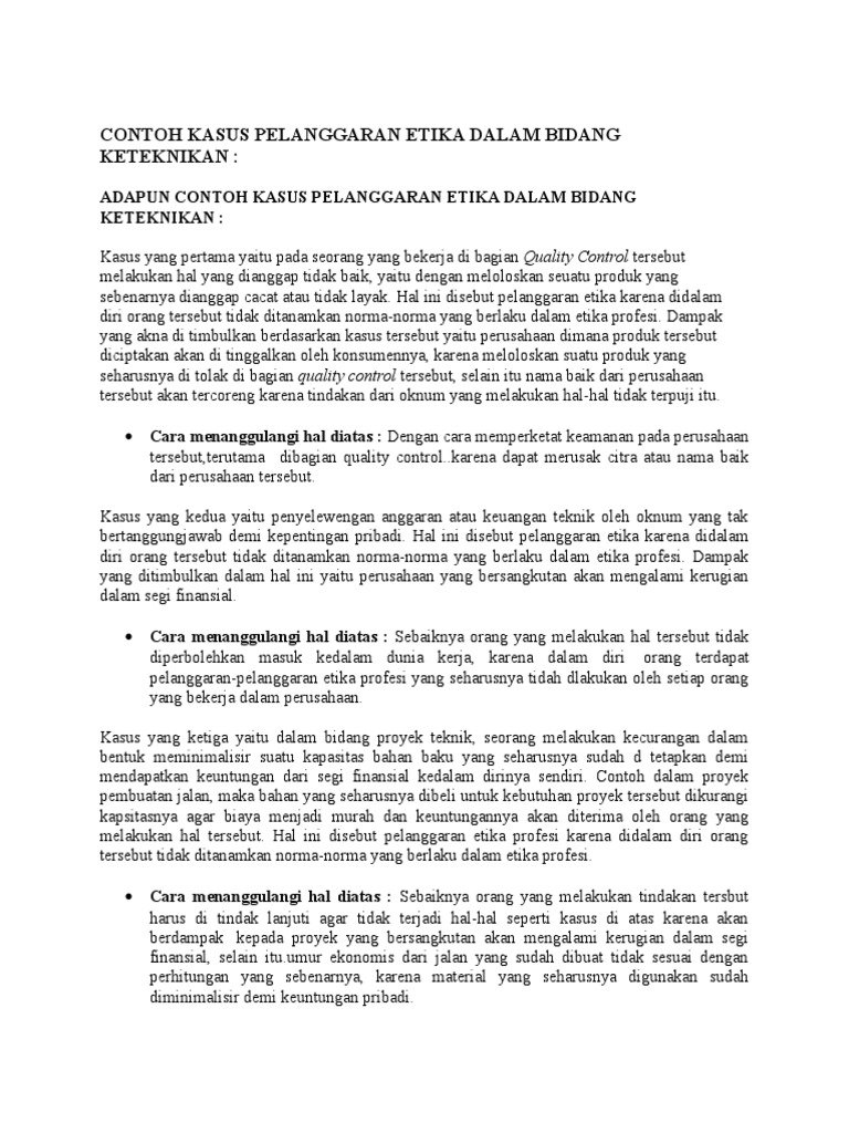 Contoh Pelanggaran Etika Bisnis Internasional A. Kasus Pelanggaran Etika Bisnis oleh Volkswagen. Volkswagen mungkin adalah kasus etika bisnis terbesar tahun ini. Hal ini dikarenakan dua hal utama: pertama, VW adalah perusahaan besar, megah, dan terhormat, bukan perusahaan kemarin sore. Apr 15, 2020 · Lengkap disertai gambar Contoh Kasus ...