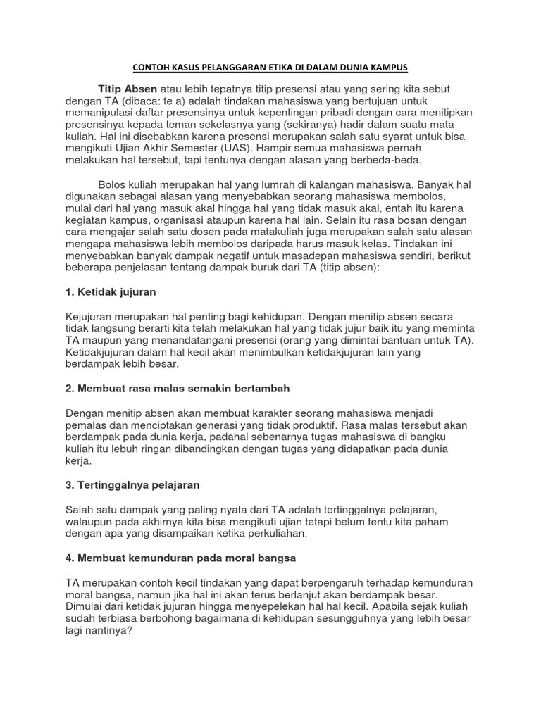 Nah, dalam artikel ini telah dikelompokkan 11 contoh pelanggaran etika bisnis dalam perusahaan yang menggemparkan. Enron Praktik akuntansi dan manipulasi pasokan energi yang diajukan menurunkan perusahaan ini. Enron: Orang-orang Tercerdas di Ruang adalah film dokumenter yang sangat bagus yang menjelaskan skandal tersebut. Monsanto Pelanggaran etika bisnis iklan grabbike salah satu kasus yang akan dibahas adalah tentang pelanggaran yang dilakukan oleh grab. Tidak memuat konten yang tidak sesuai dengan kondisi produk yang diiklankan tidak memicu konflik sara tidak mengandung pornografi tidak bertentangan dengan norma norma yang berlaku. 5 Kesalahan yang Melanggar Etika Berbisnis (Dengan Melakukan Spamming) - Abad 21 saat ini ditandai dengan pesatnya kemajuan teknologi, khususnya sosial media. Dari data Kementerian Komunikasi dan Informatika pada tahuhn 2015, 79 juta orang termasuk ke dalam pengguna aktif sosial media.. Baca Juga: Untuk Bisnis Baru, Coba Ikuti 10 Tips Mengembangkan Bisnis Ini Contoh Kasus Pelanggaran Etika Dalam Bisnis Akan tetapi iklan menjadi tidak efektif apabila tidak mempunyai unsur persuasif. Berita pelanggaran etika bisnis. Berita pelanggaran etika bawaslu tidak menemukan pelanggaran administrasi namun dukungan yang mengatasnamakan kepala daerah se jateng adalah pelanggaran etika.