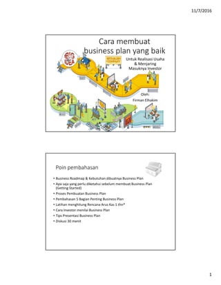 Cara Membuat Business Plan (Rencana Bisnis), Format dan ... Cara membuat business plan (rencana bisnis) mungkin belum banyak diketahui. Padahal, business plan ini merupakan salah satu hal yang cukup penting saat kita akan memulai sebuah usaha.. Business plan atau dalam bahasa Indonesia dikenal dengan rencana bisnis adalah dokumen tertulis yang menjelaskan terkait perencanaan bisnis yang akan dikelola, mulai dari tujuan, strategi, penjualan, pemasaran ...
