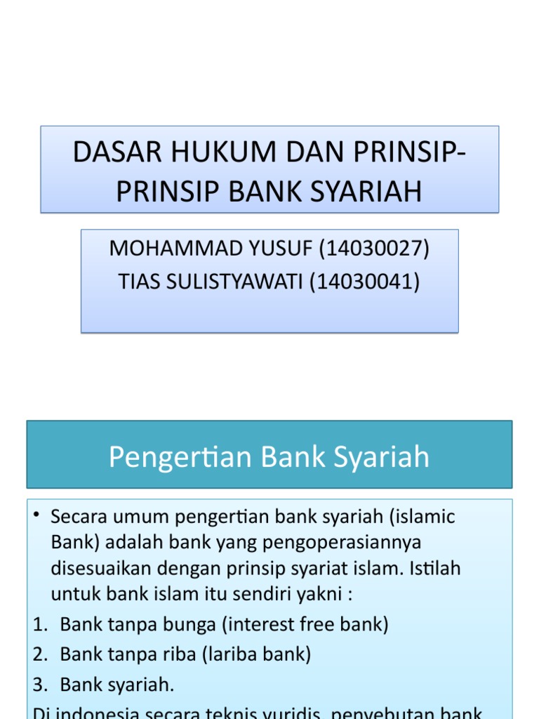 PDF 2.1. Istilah, Pengertian dan Dasar Hukum Bank Syariah Bank Syariah... Bank Islam (Islamic Bank), dan Bank Nirbunga. Perbankan Syariah mulai diprakarsai sejak tahun 1990-an. Bank Syariah yang pertama kali berdiri di Indonesia dan Dasar hukum yang utama dalam mengoperasionalkan bank syariah adalah Al Qur'an dan Hadis. Berikut ini akan dinukilkan beberapa... PDF Pelindung Deputi Gubernur Bidang Hukum Bank Indonesia Buletin hukum kebanksentralan. Departemen Hukum Bank Indonesia. C. Dasar Hukum terkait Bank Perantara. Terdapat beberapa peraturan perundang-undangan yang memiliki keterkaitan erat dengan penanganan permasalahan solvabilitas bank, baik bank sistemik maupun bank selain... D. dasar hukum bank syari'ah DI indonesia Sebab, hukum keharaman bunga bank itu tidak sekedar adanya timbal-balik dari simpanan kita, tetapi juga dana yang kita simpan di bank yang juga ü UU Perbankan No 10 thn 1998 ( pasal 1 ayat 12,13; pasal 6 huruf m dan pasal 13 huruf c). ü Surat Keputusan direksi bank Indonesia No. 32/34/KEP/DIR... Dasar hukum bank umum, bank umum daerah, dan bank... Secara sederhana hukum perbankan (banking law) adalah hukum yang mengatur segala sesuatu yang menyangkut tentang bank, baik kelembagaan, kegiatan usaha, serta cara dan proses dalam melaksanakan usaha bank.