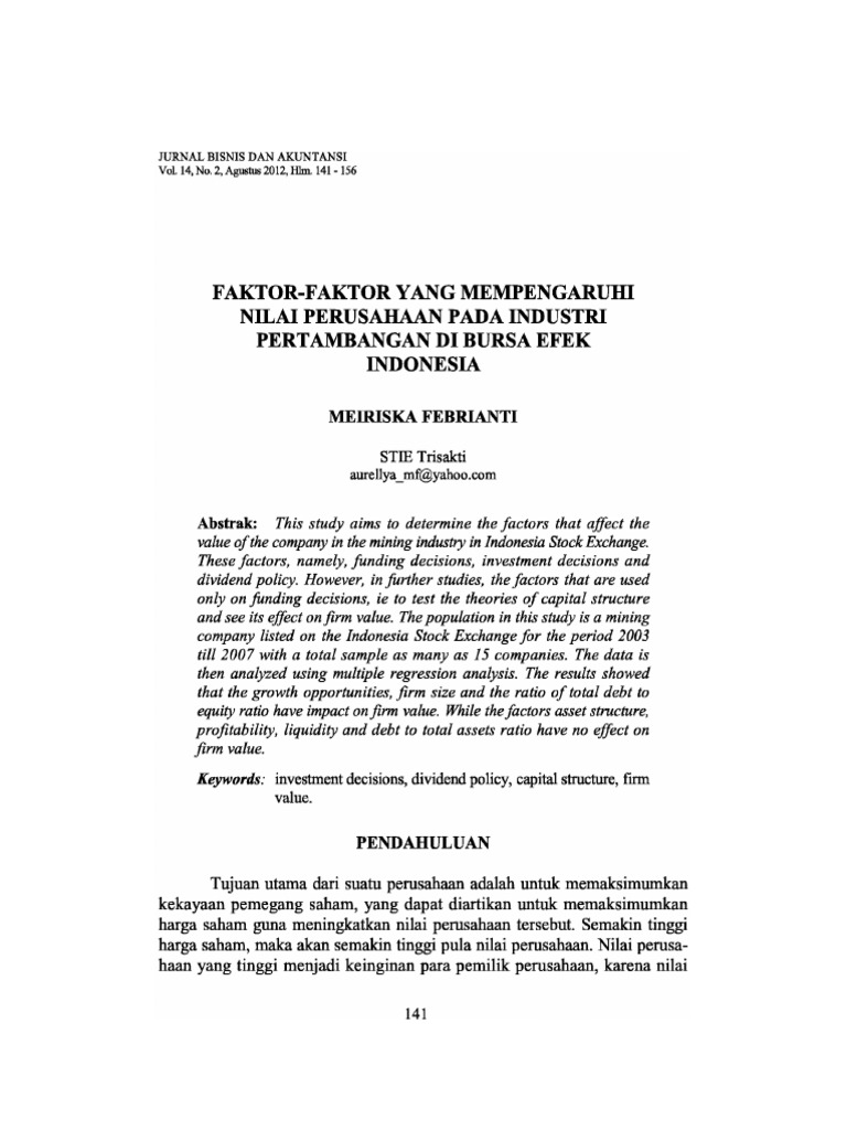PDF Faktor-faktor Yang Mempengaruhi Harga Saham Pada ... faktor-faktor yang mempengaruhi harga saham pada perusahaan perbankan yang terdaftar di bursa efek indonesia skripsi oleh : rivan willy andi 170610047 program studi manajemen fakultas ilmu sosial dan humaniora universitas putera batam tahun 2021 . faktor-faktor yang mempengaruhi