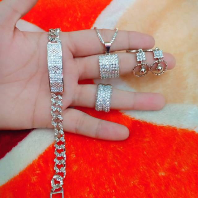 SET1 PERHIASAN EMAS PUTIH 1SET LENGKAP ANTING GELANG CINCIN KALUNG di Paris Gold Jewelry | Tokopedia