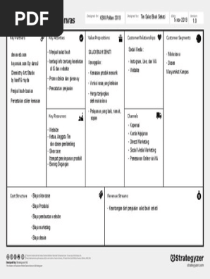 Bisnis Model Kanvas Usaha Kuliner - pojokkita.com Bisnis model kanvas usaha kuliner. 9 Blok Model Bisnis 6-9 001000.Metode ini cukup sederhana dari pada membuat rencana bisnis. Osterwalder Pigneur membuat sebuah pendekatan model kanvas yaitu Nine Building Blocks yang memudahkan bagi para pebisnis untuk membangun dan mengembangkan bisnis mereka. Apa Itu Bisnis Model Canvas? 9 Elemen, Contoh & Cara ... Bisnis model canvas merupakan sebuah dokumen penyederhanaan dari perencanaan usaha yang biasanya menjadi momok bagi para enterpreneur. Melalui penerapan BMC, para usahawan, terutama pebisnis pemula, dapat menentukan prioritas, langkah, dan masa depan usaha yang digeluti dengan lebih mudah. Business Model Canvas - Tiwi's Blog Bisnis model canvas merupakan sebuah tool dalam strategi manajemen untuk menterjemahkan konsep, konsumen, infrastruktur maupun keuangan perusahaan dalam bentuk elemen-elemen visual. Kanvas disusun dengan tujuan untuk menjelaskan, menilai, memvisualisasikan, serta mengubah model bisnis sehingga kinerja yang dihasilkan oleh startup lebih maksimal. 3 Contoh Bisnis Model Canvas - Maskromo.com 3 Contoh bisnis model canvas. 1. Contoh Bisnis Model Canvas Minuman Jus Buah Jos. 2. Contoh Bisnis Model Canvas Kedai Kopi / Cafe. 3. Contoh BMC Perusahaan Jasa Jahit Sepatu. Kesimpulan. Maskromo.com - Bagi Anda yang belum mengetahui, adanya istilah BMC atau contoh bisnis model canvas ini merupakan strategi manajemen bisnis guna merancang ...