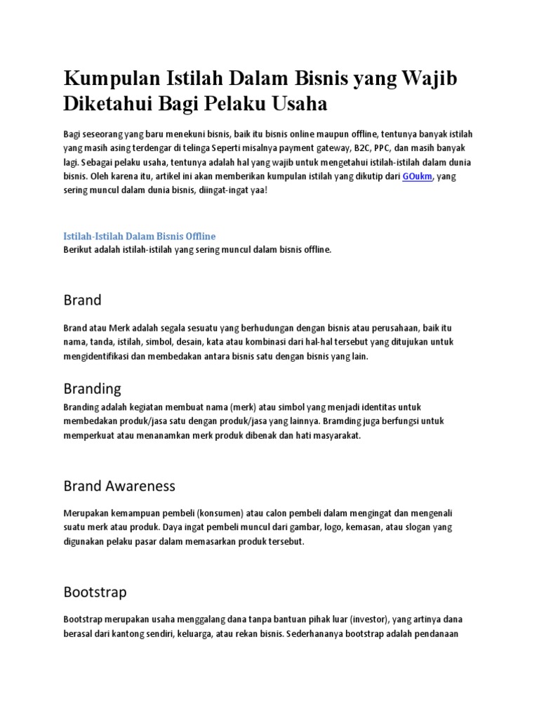 27 100 Istilah Dalam Bisnis - Info Uang Online 100 istilah dalam bisnis. Bagi seorang pebisnis tentu saja istilah istilah dalam dunia bisnis harus diketahui dan dipahami agar ketika pebisnis lain mengungkap istilah tersebut anda mengerti dan memahami artinya sehingga bisa nyambung. By pustaka bahasa inggris posted on march 10 2020 march 11 2020.