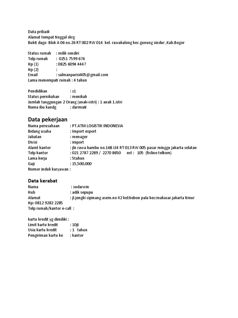 Maksud limit kartu kredit. 22 Istilah-istilah dalam kartu kredit yang sering ... Kredit Limit adalah dana yang diberikan oleh bank. Hampir sama seperti saldo pada rekening tabungan. Saldo rekening adalah jumlah uang yang disimpan di bank pada rekening tersebut. Sebaliknya Limit kartu kredit adalah uang atau dana yang dipinjamkan bank kepada nasabah. Billing Statements BCA - BCA Smartcash BCA - Bisnis - kartu-kredit-bisnis. Dengan mengakses situs ini, Anda telah menyetujui penggunaan cookies dari kami. Website ini terbaik dilihat dengan browser Internet Explore 11, Google Chrome 48, Mozilla Firefox 43, atau yang terbaru. ... - Limit Rp 10 juta s.d Rp 50 juta ... 22 Maksud Limit Kartu Kredit - Info Uang Online Maksud limit kartu kredit. Adakalanya bahkan limit kartu kredit sebesar jumlah penghasilan kita. Oleh sebab itu penggunaan kartu kredit hingga limit maksimal akan menimbulkan masalah di kemudian hari. Pembatasan limit kartu kredit kartu kredit pemerintah digunakan hanya untuk pembayaran kepada 1 satu penerimarekanan maksimal rp 50 juta per ... Arti Kredit Limit Gabungan pada Kartu Kredit BRI - blog ... Contoh : Kita sudah memakai Kartu Kredit BRI Touch kita sebesar 14.800.000,- maka sisa limit yg bisa dipakai oleh BRI Gold adalah hanya 200.000…atau sebaliknya…jika sebelumnya kita sudah pake yg BRI Gold 14.800.000,- maka limit BRI Touch yg bisa kita pake adalah cuma tinggal 200.000 lagi.