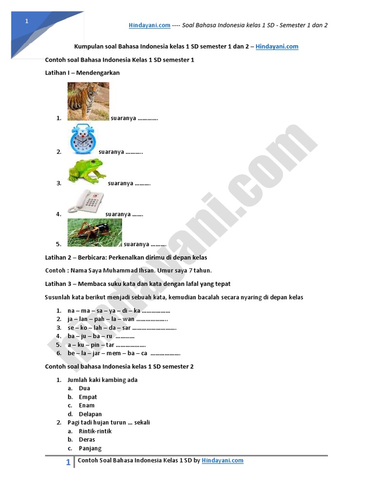 Bank soal kelas 1 sd